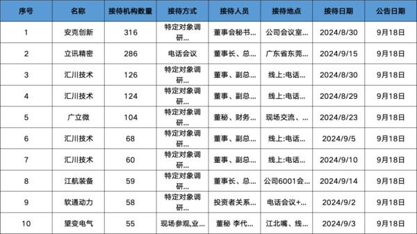 重点机构:泓德基金、汇添富基金、嘉实基金、交银施罗德基金、泉果基金、上海睿郡资产、上海高毅资产、上海运舟私募基金、天弘基金、易方达基金、中庚基金、中欧基金、富国基金