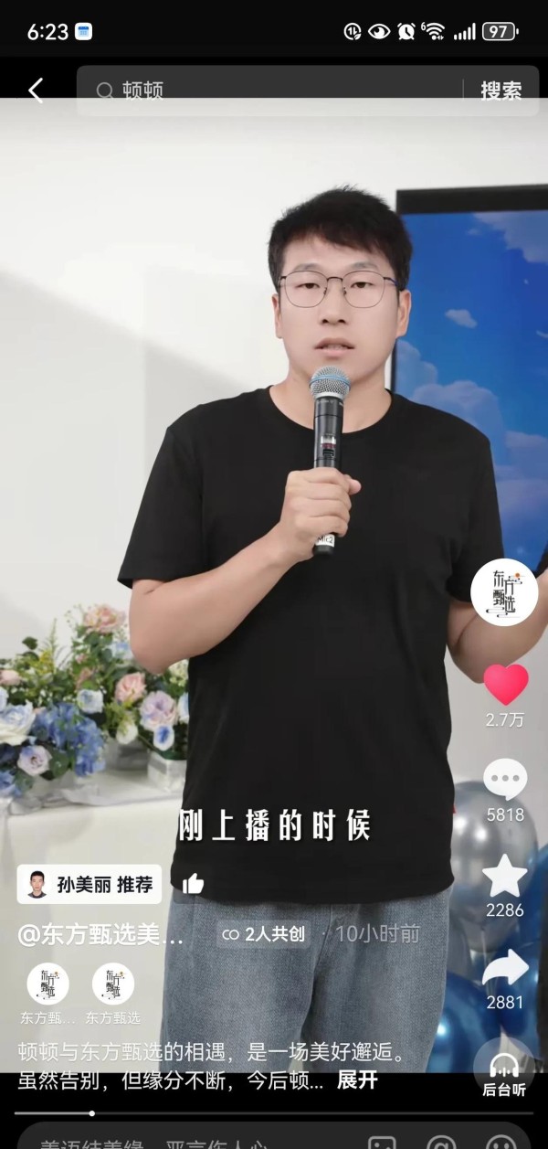 又一个“董宇辉出走”?顿顿离职东方甄选背后:“去头部化”战略再遭考验