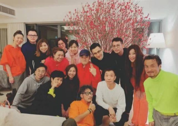 刘恺威和香港朋友的大合照,感觉刘恺威在香港娱乐圈认识的人还挺多的,如今新年聚会也是促进友谊的方式。看来刘恺威和古巨基的感情非常好,两人合照时挨得特别近,刘恺威弯腰站在古巨基旁边,而古巨基不改逗趣本质一直在做搞怪表情抢镜。