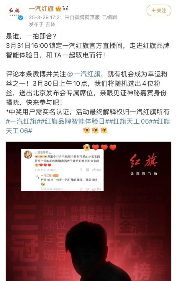 网友爆料孙颖莎与红旗代言一年前就谈好了,只为等孙颖莎拿到驾照孙颖莎携手红旗品牌,粉丝热议,细心小举动引人关注