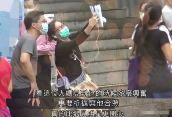 近日,港媒报道了霍启刚在大街上免费派送口罩给路人,有路人认出要求与他合影,霍启刚大方同意女粉丝合影时候贴心笑着弯着腰配合。