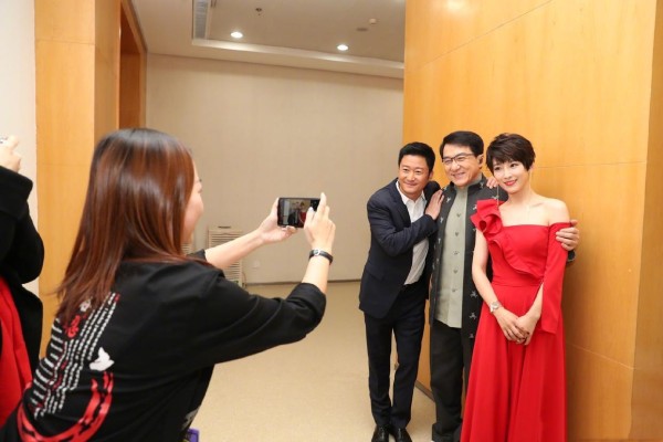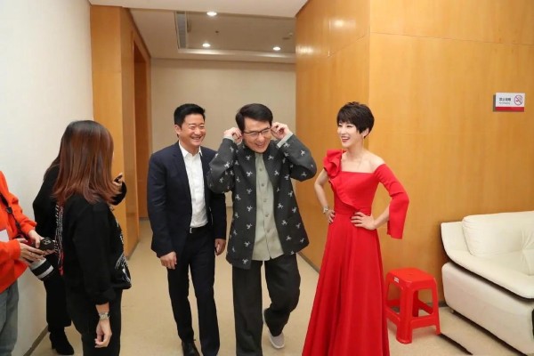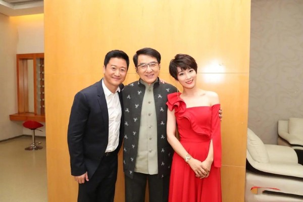 吴京夫妇与成龙大哥合体亮相,谢楠一身红裙,网友:都没明星架子