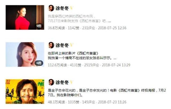 徐冬冬卖力宣传