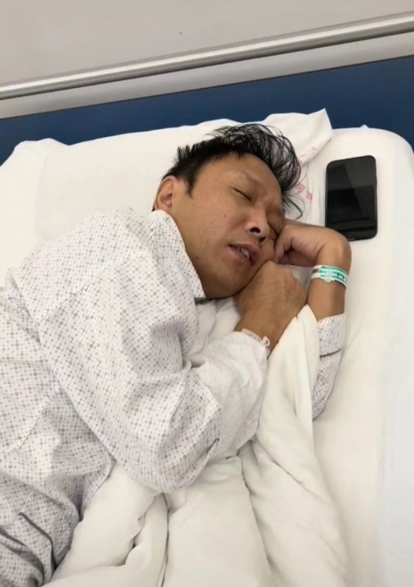 视频中,祁隆穿着病号服躺在床上,脸色苍白神情憔悴,手上还戴着手环,双眼紧闭,看起来十分痛苦的样子。
