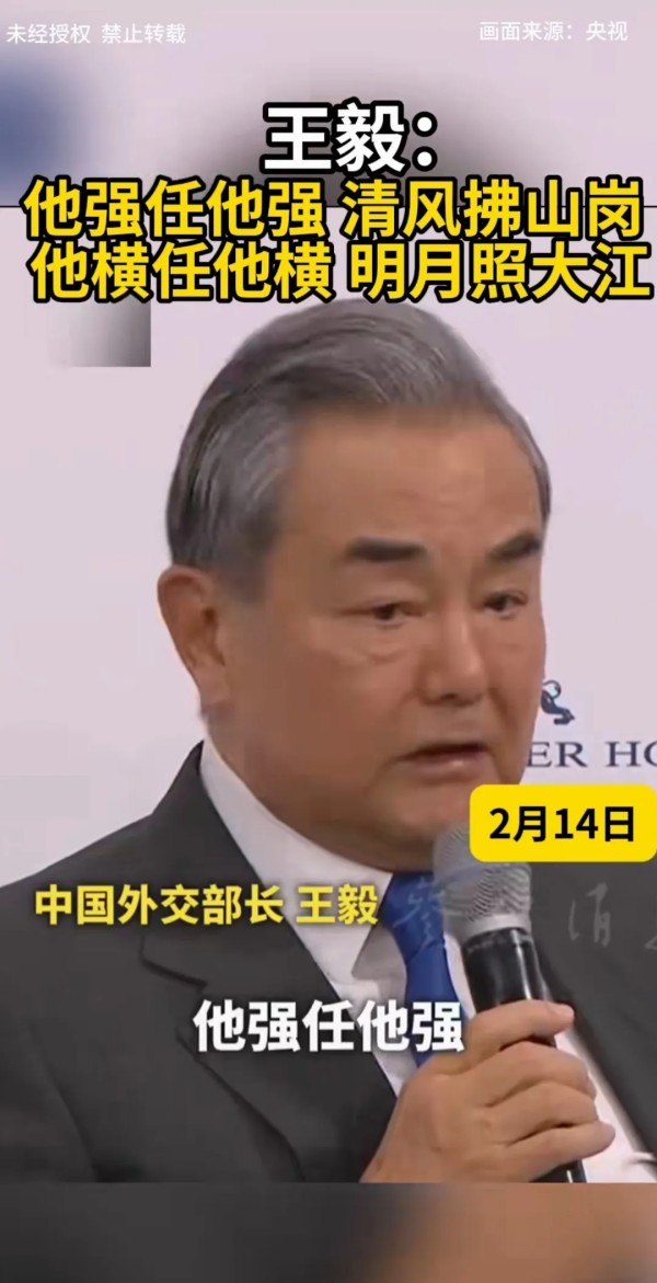 ### 二、如何看待王毅部长的“他强任他强,清风拂山岗”