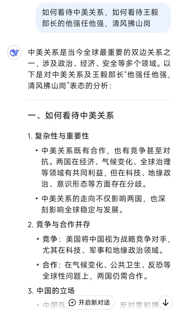 中美关系是当今全球最重要的双边关系之一,涉及政治、经济、安全等多个领域。以下是对中美关系及王毅部长“他强任他强,清风拂山岗”表态的分析: