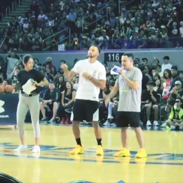 其实在之前有几位球星的亚洲行中也会上演“巨人之战”,被挑上来的小孩大多都是被球星们无情地蹂躏了篮球梦。在他们上篮的时候,球星会残酷地送上火锅大帽,但是库里恰恰相反,这很显然都是他故意手下留情输给球迷们。这么有爱的MVP难怪讨人喜欢。