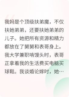 妈妈是个顶级扶弟魔 这女儿的订婚宴我这当妈吗的怎么可能不出席。」男友妈妈见状立刻热情的迎了过去,指着我旁边的位置道:「亲家母,来,坐这里。」我妈看了我一眼,然后慢悠悠坐下。男友爸爸举起酒杯敬她:「感谢你啊,培养出若若这么优秀的孩子,我们对若若非常满意,两个孩子的婚事刚刚跟若若爸爸也谈的差不多了,咱们以后就是一家人了。」......