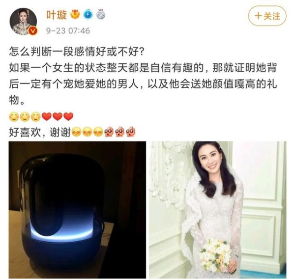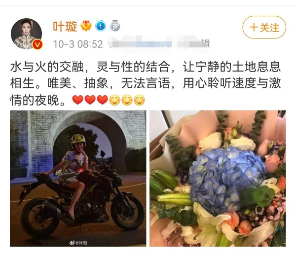 10月5日清早,著名演员叶璇在社交平台晒照并发文秀恩爱,很多网友看到后都对叶璇的新恋情送上了祝福。
