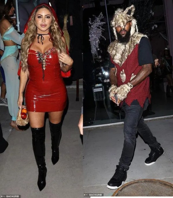 从穿衣打扮看,两个人当天参加的是万圣节派对,并且还组成了“情侣装”。拉尔萨扮演的是热辣版的小红帽,而马库斯则是并不可怕的大灰狼。