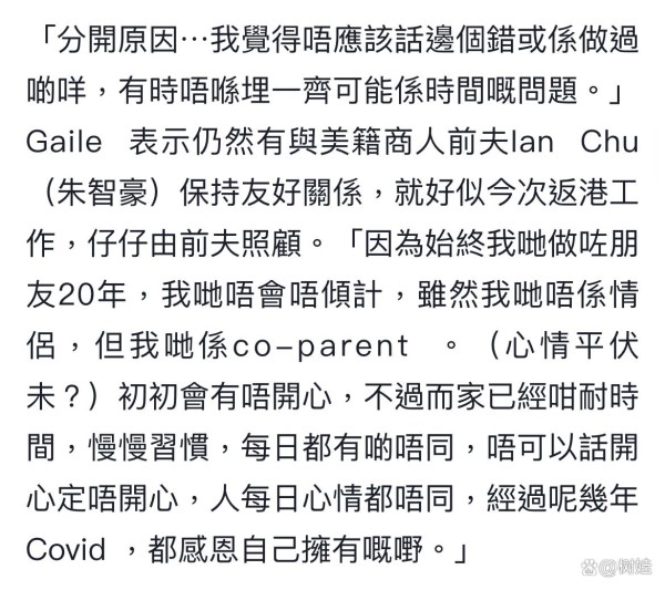 乐基儿这一次离婚与之前与黎明离婚最大的不同在于,上次离婚了彼此就再也不联系,各自生活,这一次因为与这一任丈夫生了孩子,所以两人很难脱离关系。关于儿子,乐基儿表示会与对方一同抚养,而儿子将会留在美国生活,暂时由对方照顾,虽然因为工作的关系,她要四处飞,但她都会坚持每天与儿子视频。也正是如此,乐基儿如今与第二任丈夫保持着朋友的关系,两人相识已经20年,重点是还要一起照顾孩子,就不可能不联系,甚至还要考虑儿子的感受,进行全家活动,一如在4月的时候全家一起去主题乐园玩,实际上就是为了给儿子营造一个好的家庭氛围,所以至今她也没有对儿子说明父母已经离婚,终究儿子的年纪太小。