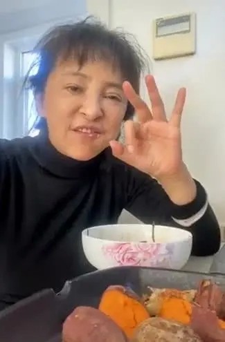 李勤勤纯素颜拍视频,蓬头垢面啃了仨烧饼,56岁的状态很真实