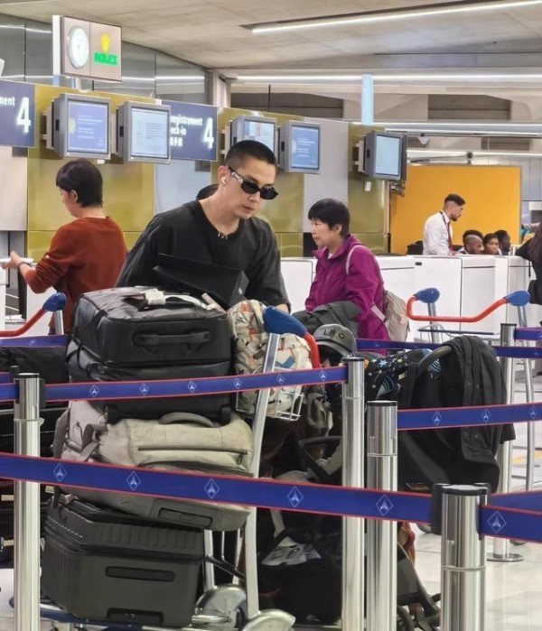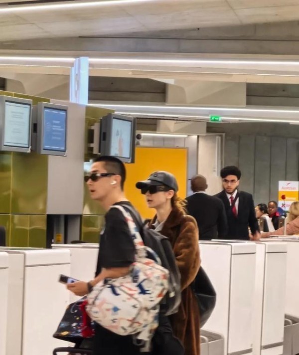 李承铉留着利落的短发,穿着短袖上衣在航站楼里自如地走动。与他形成鲜明对比的是戚薇,她穿着厚实的绒毛外套,把自己包裹得相当暖和。这样截然不同的穿着风格站在一起,倒是构成了一道有趣的风景线。