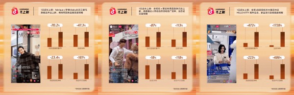 其次,在上新大场和日播中,商家都需要做好准备,把握机遇。 女装品牌indicia参与“女装开播激励赛”,将投广天数拉满「冬上新」全周期,日均直播GMV增长了87%。女装品牌三彩则结合新品上新大场,追加投入,实现上新即爆,日均直播GMV提升69%。