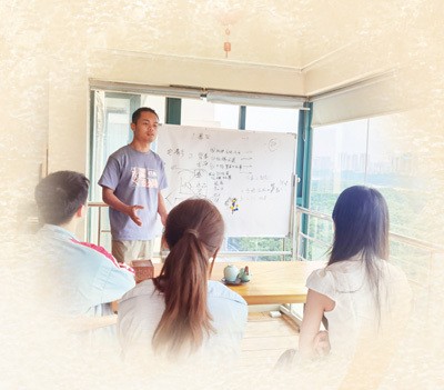 黄清穗(左二)和团队成员在讨论纹样。本报记者 祝佳祺摄
