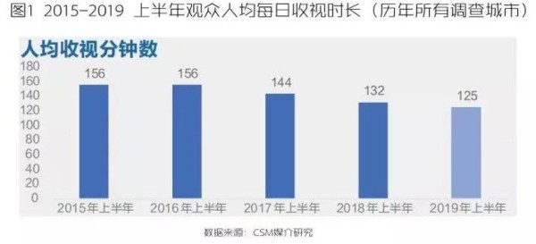 图2: 2015年-2019年上半年观众人均每日收视市场(数据来源:CSM媒介研究)