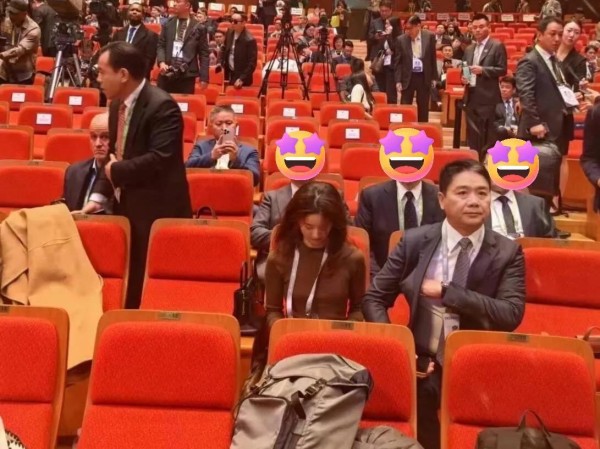 会议期间,有抓拍照片显示,章泽天凑到刘强东耳边私语,平时在镜头前严肃的东哥竟然嘴角上扬露出笑容。这一互动展现了他们之间的默契和情感交流 。