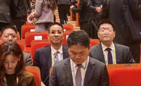 11月1日,刘强东在朋友圈调侃自己:“这是哪位现场企业家给我拍的照片啊?让我在老婆面前彻底没了底气!罚你一份七鲜小厨做的黄狗猪头肉。”