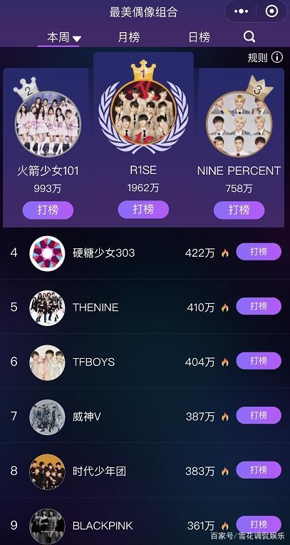 明星组合势力排行榜:THE9第一,硬糖少女首进前十,TFBOYS引争议