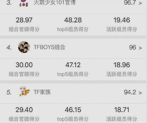 明星组合势力榜:火箭少女居第三,tfboys仅排第二,第一让人意外
