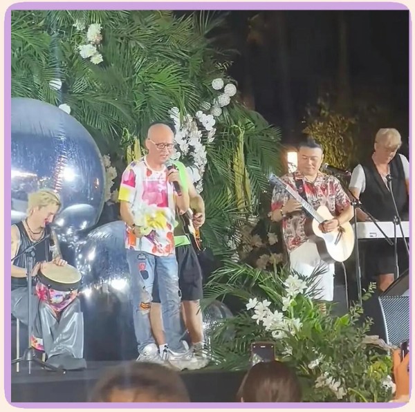 在婚礼当天,数百名宾客齐聚一堂,其中包括黄勇在婚礼上有音乐圈的众多好友和亲人到场见证,场面温馨且热闹。从午后悠闲的茶歇到夜晚欢闹的晚宴派对,现场氛围一直保持着热烈与喜庆。