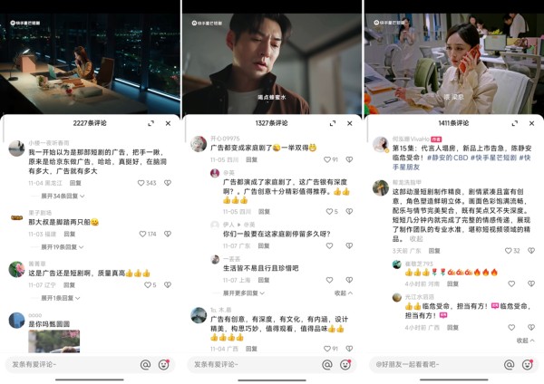与短剧内容破圈传播同等重要的,是营销玩法创新带来的质效双收——在本次合作中,快手星芒短剧除了提供独家冠名、专属剧场、压屏条、片尾LOGO露出、定制下集预告等常规化权益,使得京东11.11信息多次触达用户;还将京东核心业务场景自然融入其中,借由剧情语境与人物行为实现故事感种草,让品牌价值通过情节被传递、被感知、被体验,完成从“曝光”到“心智”的进阶跃迁。