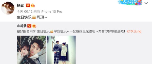 杨紫连续四年为李现庆生,陈坤连续13年给周迅庆生,神仙友谊真多