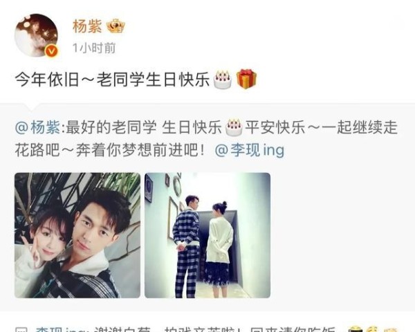 李现连续七年为杨紫庆生,网友:友情长存李现连续七年为杨紫庆生!