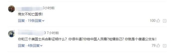 你和三个美国士兵合影证明什么?你很牛逼?你给中国人民看?炫耀自己?