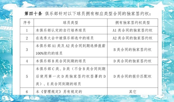 C类合同普遍适用,存在双向选择,规则保障球员与俱乐部权益。这种合同最为普遍,适用于那些不符合A类、B类及其他特殊合同条件的球员。C类合同有一个独特的规则,即球员和俱乐部之间存在一定的双向选择权,规则保障了球员与俱乐部双方的权益。