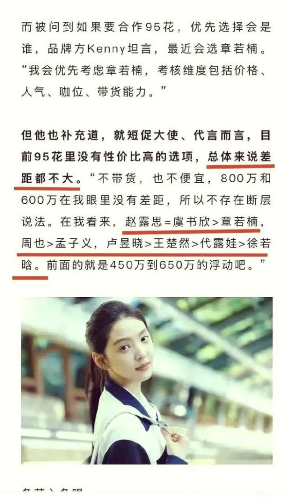 市场中,数据精准衡量艺人的商业价值,优秀作品和持续表现成为长期发展的关键。章若楠在代言选择上更为注重品质,她所代言的品牌均与她的个人气质高度契合,这种精准的营销策略有效地提高了转化率,自然也深受品牌方的青睐。同时,粉丝经济在商业价值评估中也占据着举足轻重的地位。赵露思和虞书欣的粉丝购买力强劲,每当她们代言的新品上市,往往能够迅速售罄,这种强有力的支持正是品牌方所追求的“真爱”。