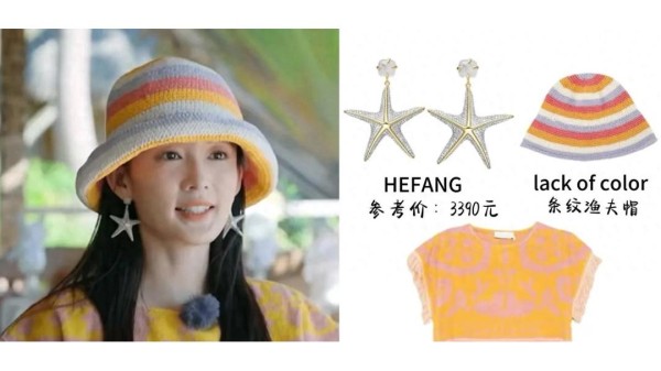 这姑娘就是典型的“亮色控”,帽子跟上衣全身几乎飘着统一色调,但要说巧思,咱说白了,人家就奔着度假风去的。