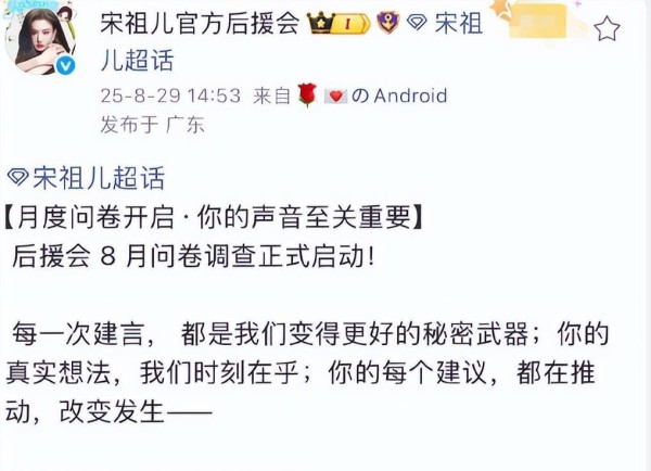 原本宋女士的粉丝团,只是出于一时灵感,毕竟新人想了解“领导们”对自己的评价,于是在社交平台上发了个问卷调查。
