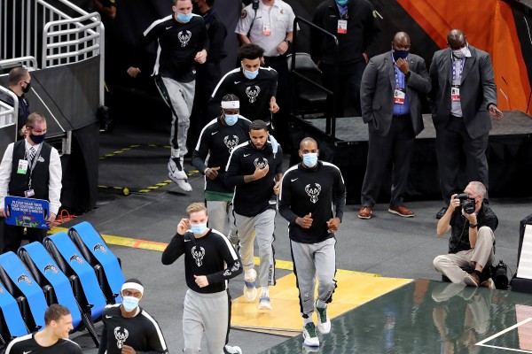 NBA此前规定球员在非比赛时间必须戴口罩。