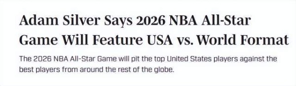 2026年的NBA全明星赛将正式采用“美国队 vs 世界队”的全新赛制!