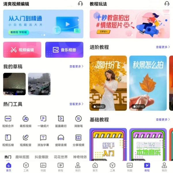 它是一个功能全面且操作简单的视频剪辑软件,提供视频编辑、音乐相册以及一键成片等众多便捷功能。除了拥有丰富的主题、特效、滤镜等工具外,它还拥有教程玩法栏目。可以帮助不同人群轻松打造出个性化的视频作品,提升拍摄和剪辑技能。