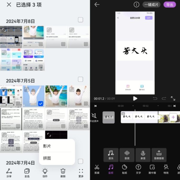 除了使用专业的视频编辑工具,我们也可以利用手机自带的图库应用来制作音乐相册。以华为手机为例,只需要打开图库,然后勾选需要制作音乐相册的照片,再点击下方的“创作”中的“影片”选项,进入编辑页面后选择“音频”,添加喜欢的音乐,最后点击“导出”按钮即可完成精彩的音乐相册制作。