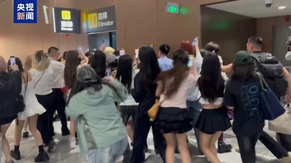 当晚,记者根据黄牛售卖的行程信息等候,该艺人团体果然出现在北京大兴国际机场国内出发航站楼,此时,现场粉丝瞬间一拥而上,乱作一团,将艺人“围堵”起来。