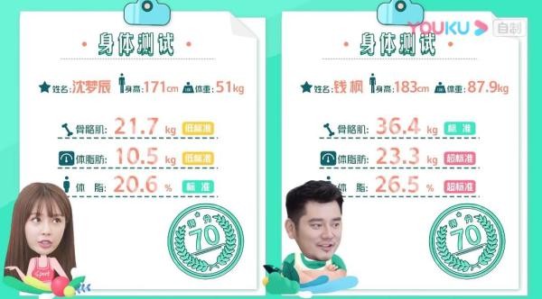像《头号型动派》中,沈梦辰的身材应该是很多人羡慕的,171cm,51kg,但她骨骼肌和体脂肪都低于标准,体能极弱,是属于那种不够健康的瘦。《头号型动派》的出发点便是,在专业健身教练和饮食专家的指导下,实现“健康地瘦”,具有一定的科普性和实用性。