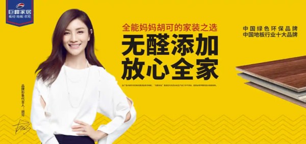 2018年1月30日,巨峰家居正式签约著名演员胡可为品牌形象代言人。戏里戏外,胡可都是以好妈妈好太太的形象出现在公众面前,这种积极正面的形象非常契合巨峰家居的“绿色环保、为每个家庭的健康保驾起航”理念,因此便毫不犹豫选择与胡可合作。