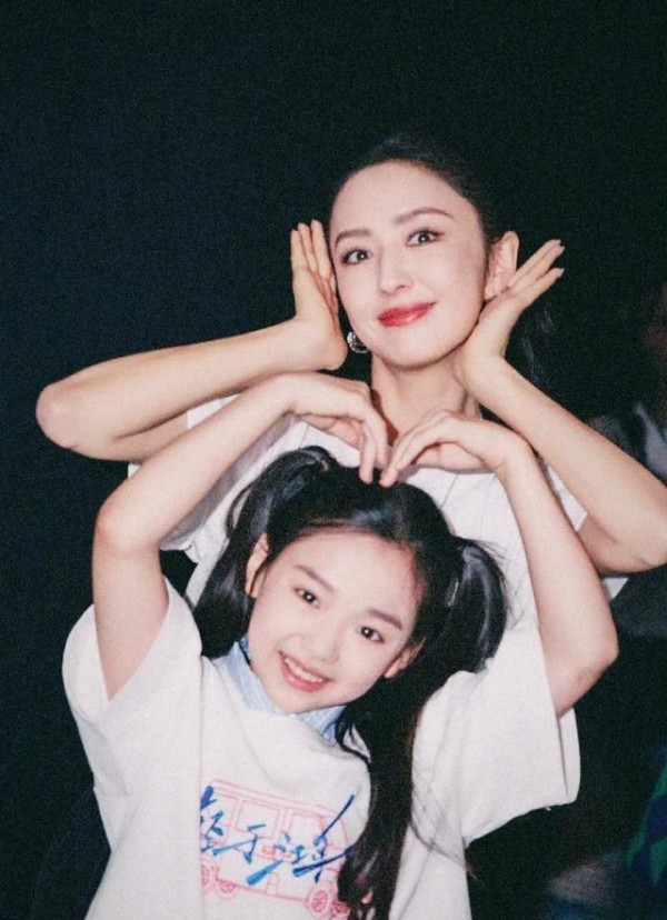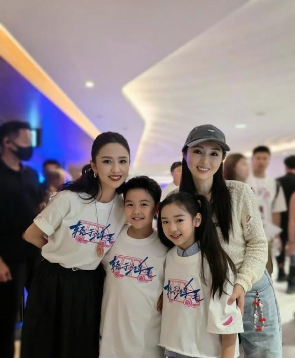 你们知道,董璇带着她女儿,小酒窝,站那儿跟佟丽娅带着她儿子朵朵,一起合影