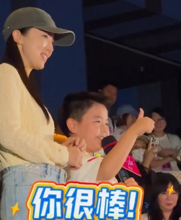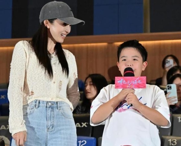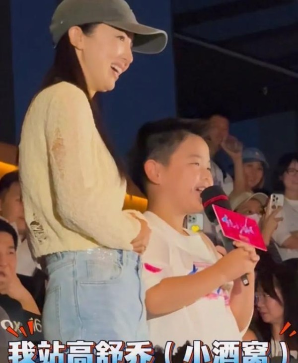 照片里她带着她的小宝贝儿子小酒窝(高舒乔)一块儿去参加电影的首映礼