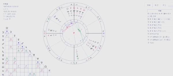 接下来,我们将深入探讨李易峰的星盘。有传闻称李易峰的生日为1987年5月4日,时间大约在上午10点到12点之间。需要注意的是,由于网络上的资料可能并不详尽,我们无法为其提供精确的时间矫正。尽管如此,即便相差一个小时,其星盘的含义也会有所不同。但通过事件倒推星盘的方法,我们仍然可以对其进行合理的解读。