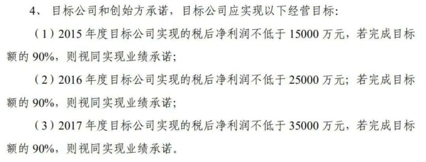 华天酒店公告显示,2016年华天酒店通过其子公司,以现金2500 万元取得星亿东方1.695%的股权(增资后)。星亿东方则做出2015~2017年累计税后净利润不低于7.5亿元的业绩承诺。且每年完成目标额的90%,则视同实现业绩承诺。