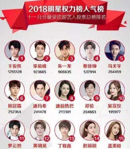 受欢迎艺人榜单,11月变化大,赵丽颖跌出前十,王俊凯人气王