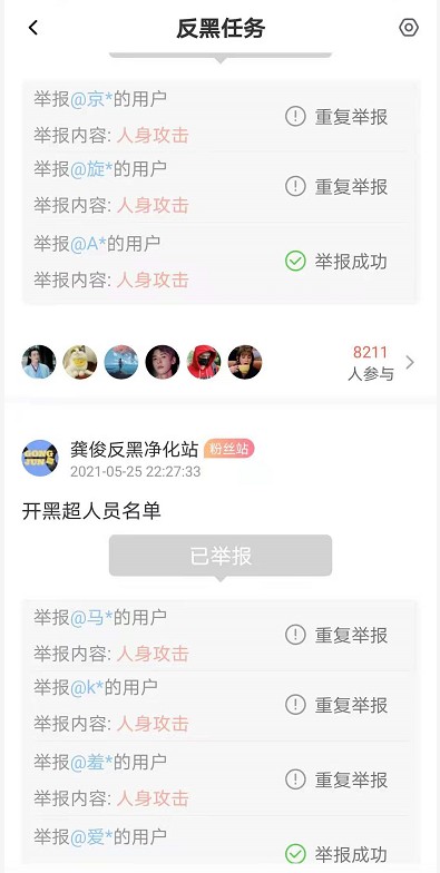 更新,最新反黑数据魔饭生已达8000左右 龚俊后援会出了名的尸位素餐,在粉圈毫无公信力。 反黑有另外2个反黑站,以及魔饭生。统计了最近约十天魔饭生的反黑数据,未包含微博手动打卡数,仅是魔饭生打卡数,可以参考下真实情况(有兴趣的也可以对比下隔壁某家数据)。