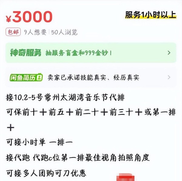 等到音乐节一开始安检的时候,为了能赶快冲到舞台前,有专门的“代跑”服务,搞得追星越来越像是一场“体力和钱的比拼”。