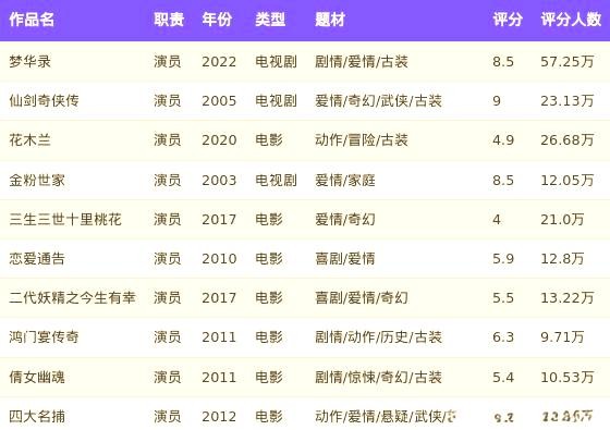 演员生涯作品数量与评分深度解析刘亦菲的演艺生涯中,哪部作品让她最受批评