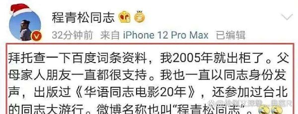 为啥这么说?这得从程青松这个人说起。2005年,程青松敢于公开“出柜”,这在当时,可不是一件容易的事儿。但恰恰是这份勇气,让他在圈里赢得了不少人的信任和尊重。你想啊,一个敢于坦诚自己性取向的人,是不是更让人觉得真实可靠?
