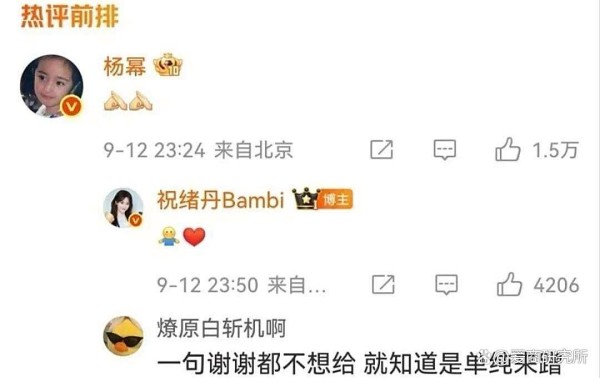 为啥会这样?据网友回忆,两人以前也合作过,祝绪丹每年都会给幂姐送祝福。可偏偏去年杨幂演技争议起飞,网上风评不太友好时,祝绪丹突然失语,生日当天也安静得像没开机。如今幂姐势头回暖,她再去凑热度,难怪被骂“捧高踩低”。